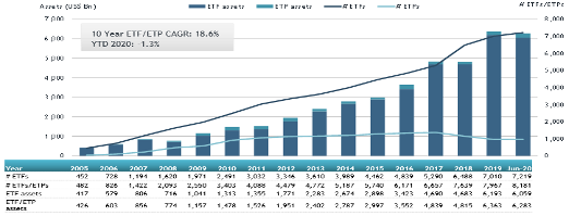 Global ETF and ETP assets as of the end of June 2020