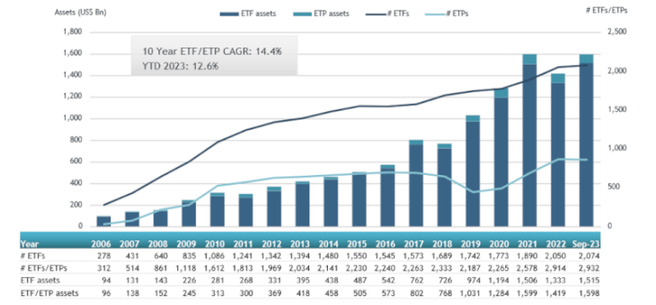 Europe ETFs and ETPs asset growth as at the end of September 2023