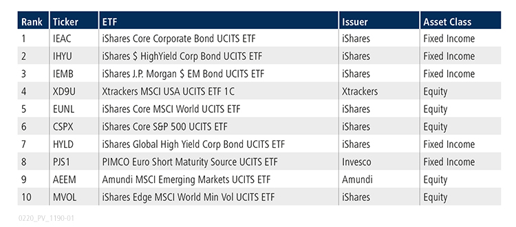 L’ETF iShares Core Corporate Bond UCITS s’est révélé être l’instrument le plus activement négocié en janvier sur la plateforme européenne d’ETF de Tradeweb, après avoir occupé la première place en septembre 2019.
