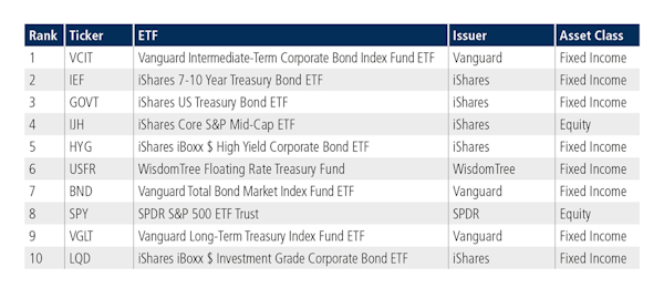 Eight of the top ten ETFs by traded notional volume were fixed income-based. The Vanguard Intermediate-Term Corporate Bond Index Fund ETF ranked first in December, with November’s top ETF, iShares iBoxx $ High Yield Corporate Bond ETF, moving to fifth place.
