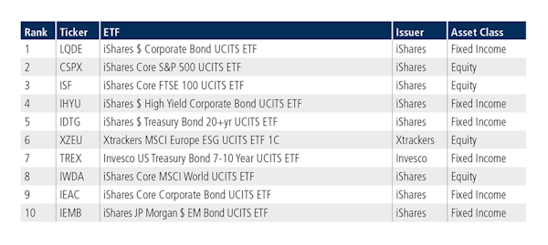 More than half of the top ten spots were occupied by fixed income products, with the iShares $ Corporate Bond UCITS ETF moving two places up from November to be ranked first in December.chart