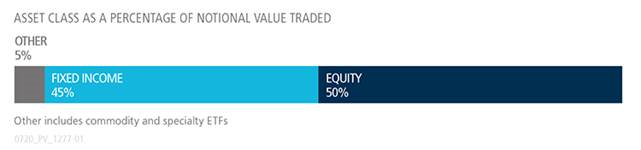 During the month, 747 unique tickers traded on the Tradeweb U.S. ETF platform. The single most traded product by notional value was the JPMorgan BetaBuilders Europe ETF, which seeks investment results that closely correspond to the Morningstar® Developed Europe Target Market Exposure Index.